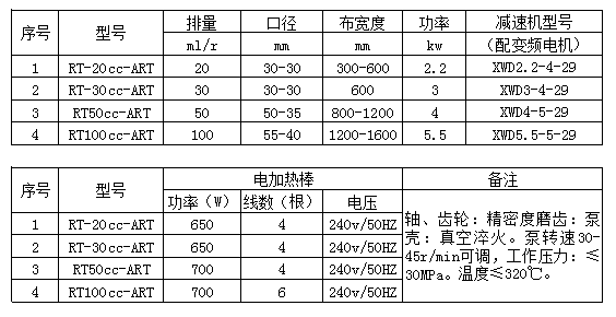 熔體泵型號參數(shù)